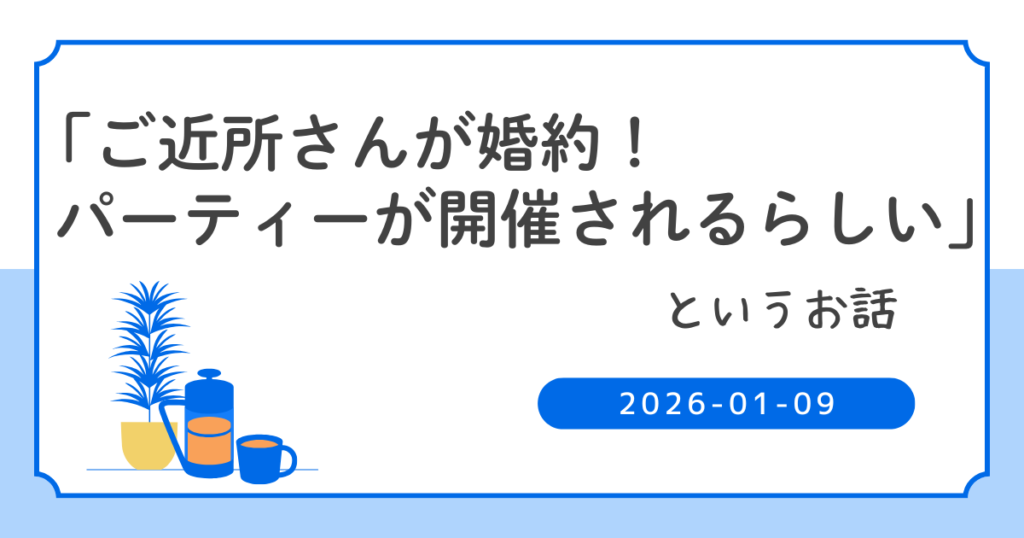 「ご近所さんが婚約!パーティーが開催されるらしい」というお話