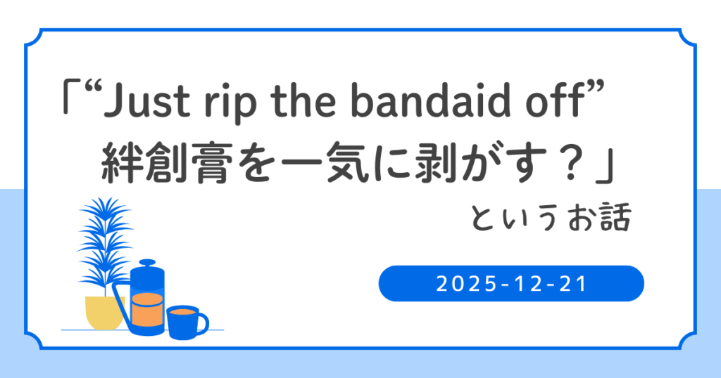 「“Just rip the bandaid off” 絆創膏を一気に剥がす?」というお話